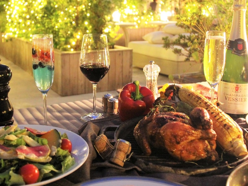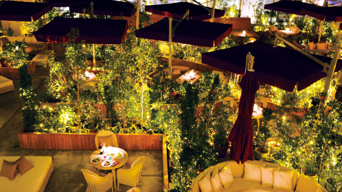 開放感溢れるガーデンテラス広々とした席で街中にいながら異空間。デイナータイムはイルミネーションが輝く空間の中、お酒とお食事をお楽しみ頂けます。